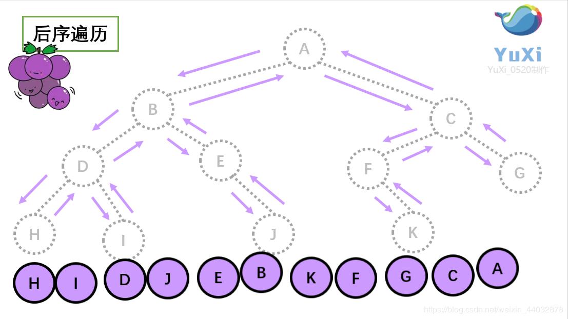 后序遍历就像是剪葡萄,我们要把一串葡萄剪成一颗一颗的。