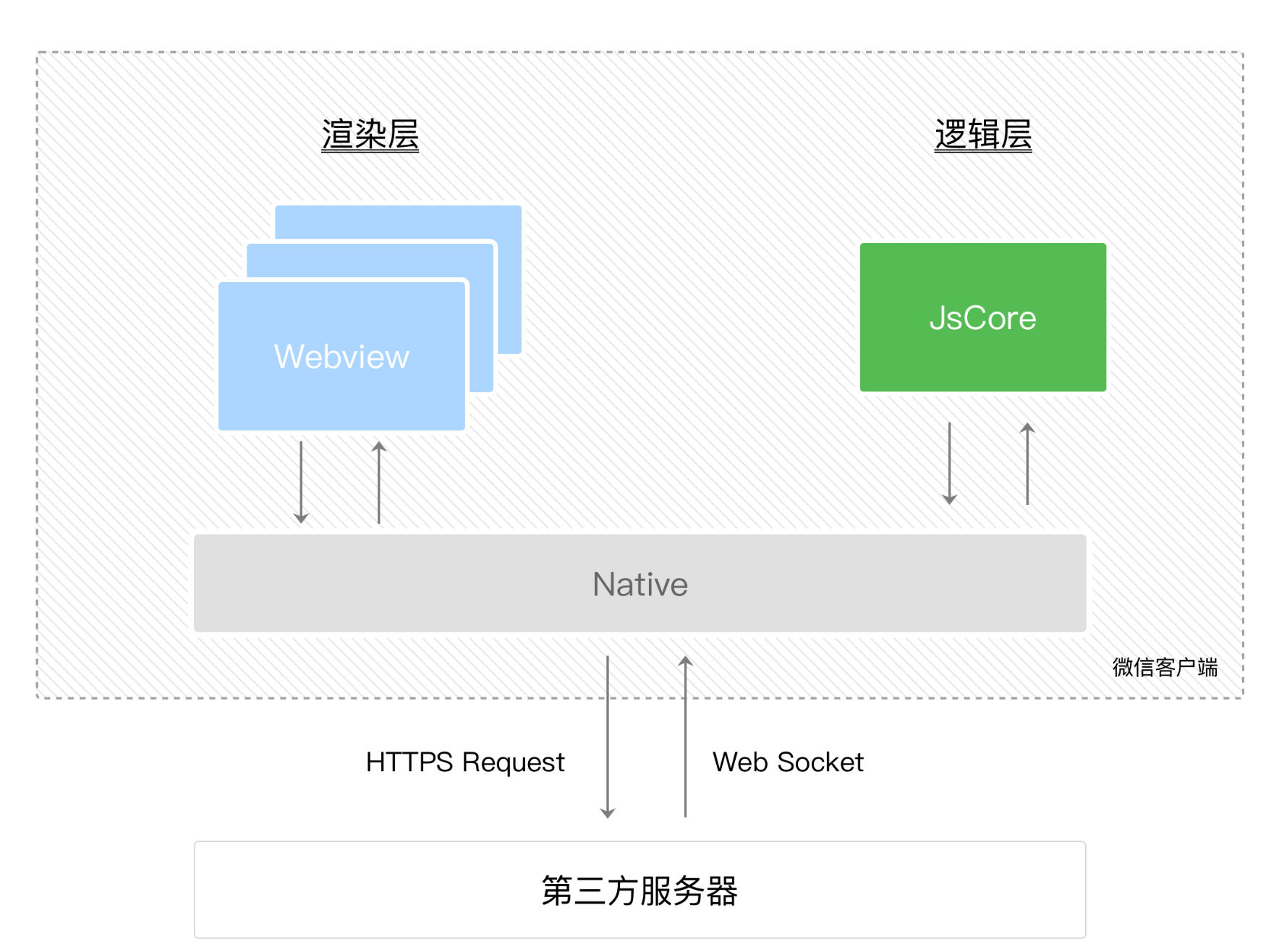 官方 原文链接 小程序的运行环境分成渲染层和逻辑层,其中 WXML 模板和 WXSS 样式工作在渲染层,JS 脚本工作在逻辑层。